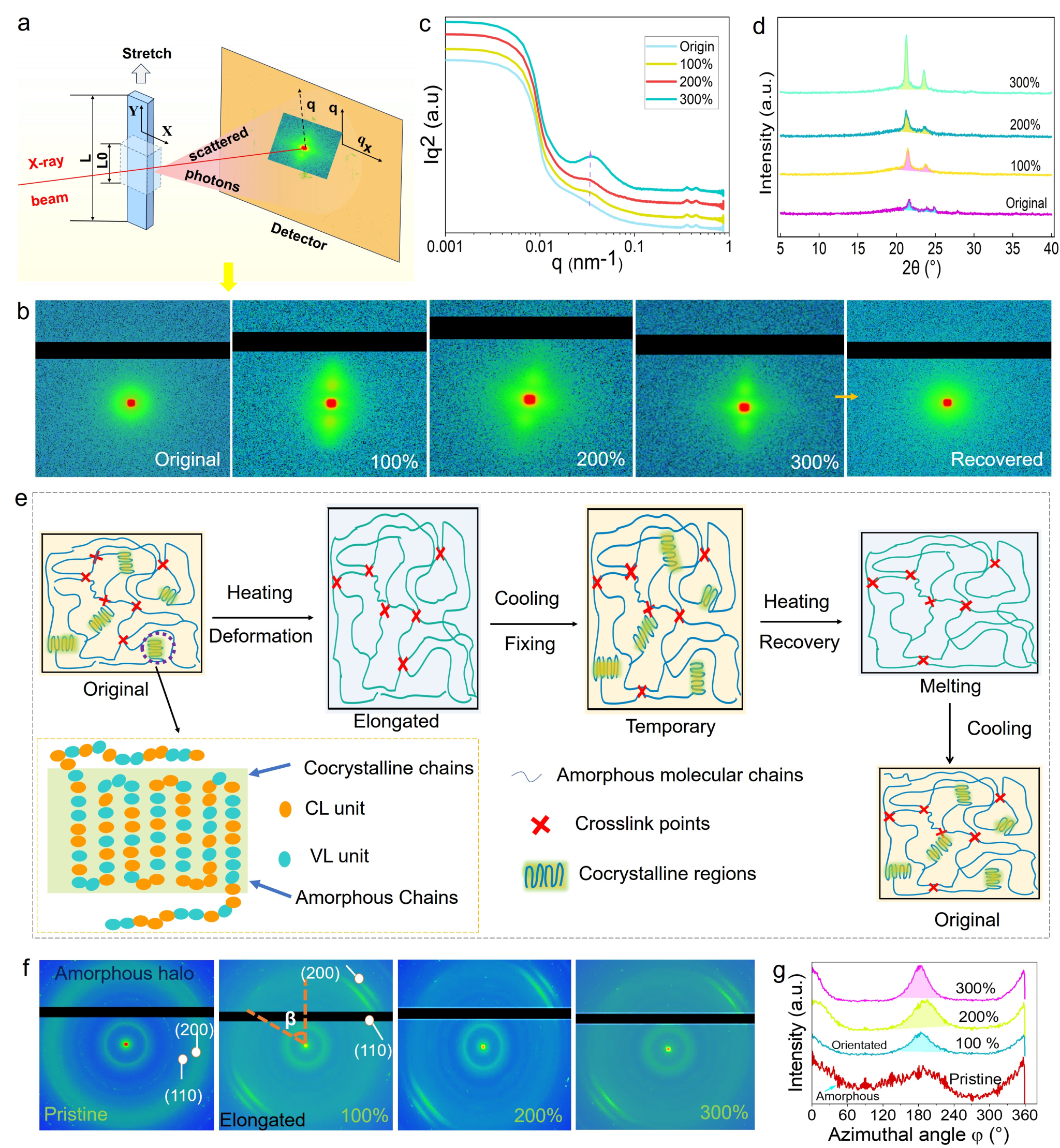 图3:拉伸诱导结晶及拉伸过程中长周期的变化对形状固定的影响