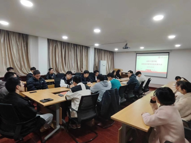 为了增强学生党员对习近平新时代中国特色社会主义思想中全面从严治党的理解和认识,11月24日,材料科学研究生党支部书记苏晓磊在215会议室,以《坚定不移全面从严治党,深入推进新时代党的建设新的伟大工程》为题,为支部全体学生党员讲授主题教育专题党课。