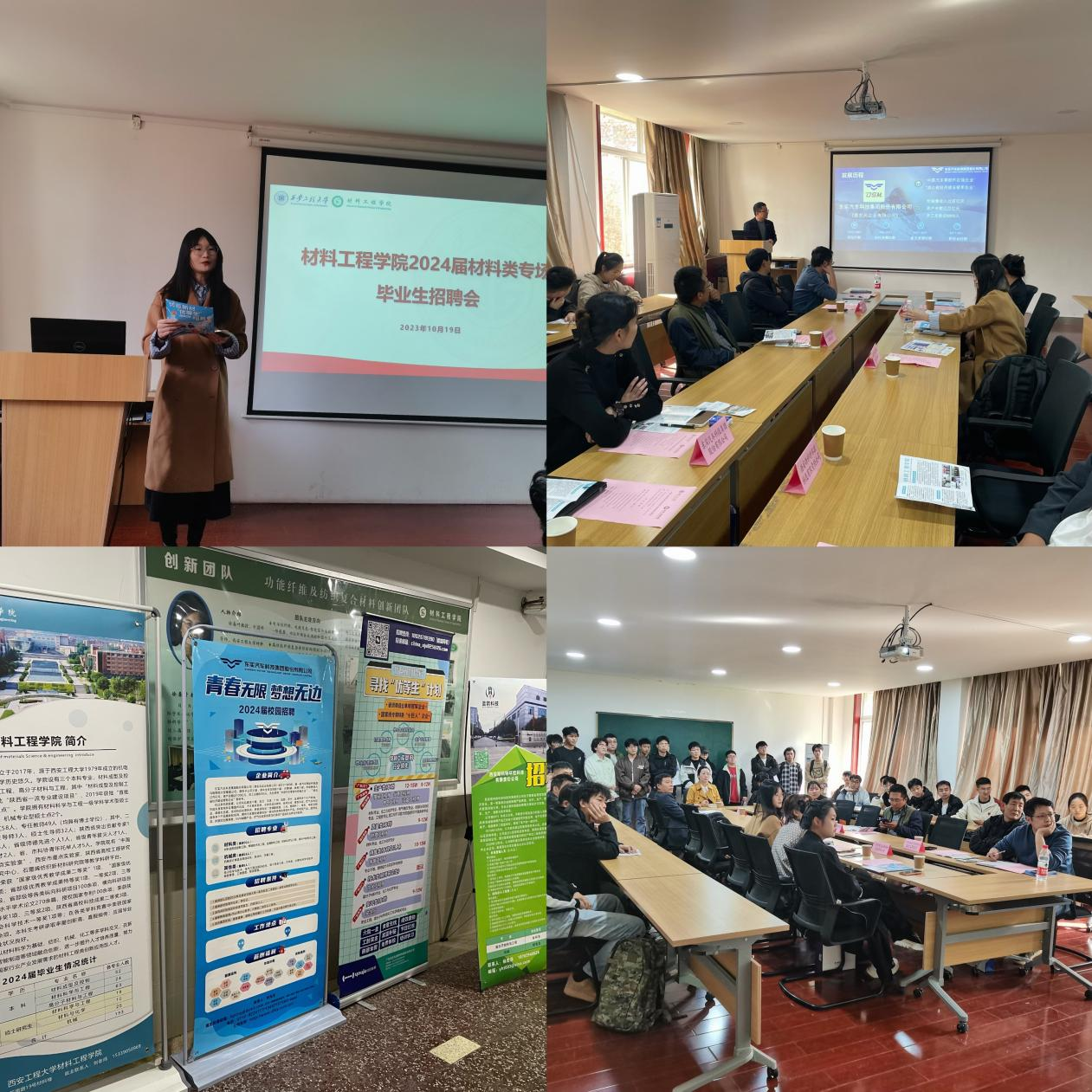 2023年10月19日下午,材料工程学院2024届毕业生材料领域重点单位专场招聘会在学院215学术报告厅举办。来自陕西、山东、江苏、广东、湖北、海南等地的用人单位来校招聘。本次双选会邀请到中国船舶集团、东风汽车集团、中国石化等大型国企及下属企业集中参会,现场提供近100个工作岗位,招聘专业以材料、机械、化工等为主,囊括我院所有专业,吸引了众多应届毕业生到场参与。
