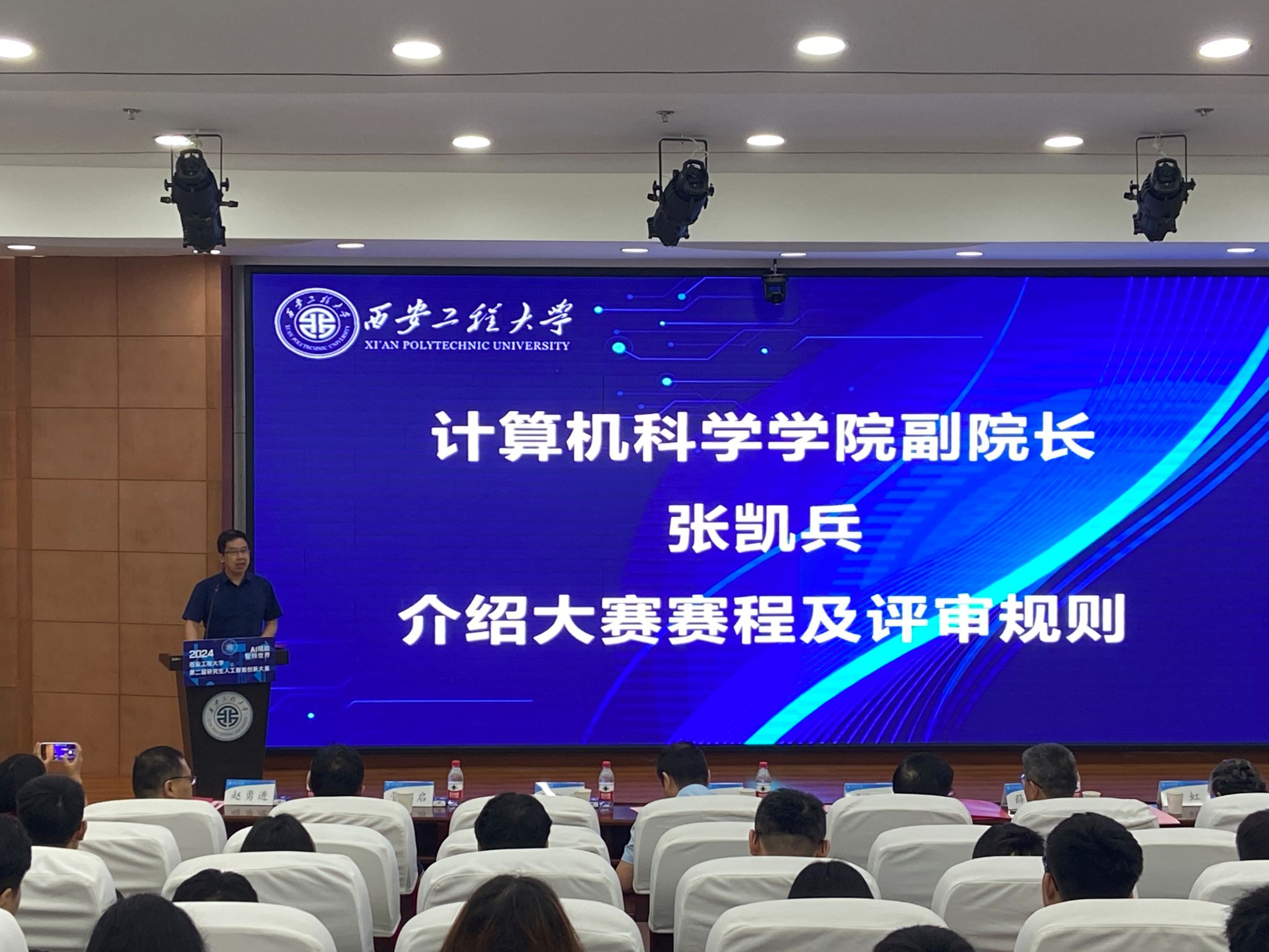 AI赋能,智领世界。2024年7月9日,由校党委研究生工作部、研究生院主办,计算机科学学院承办的“华为杯”第六届中国研究生人工智能创新大赛校内选拔赛暨西安工程大学第二届研究生人工智大赛决赛在临潼校区图书馆开赛。西安理工大学朱虹教授、长安大学高涛教授、西安科技大学马天教授和我校机电学院管声启教授、电子信息学院李云虹教授、张蕾教授、王晓华教授、理学院范钦伟教授、计算机学院朱欣娟教授、刘枫教授、张晓滨副教授、刘俊华副教授等评委专家参加开幕式及决赛评审,校党委研究生工作部部长臧国强、计算机科学学院院长薛涛教授、副院长张凯兵教授及各支参赛队伍参加开幕式。