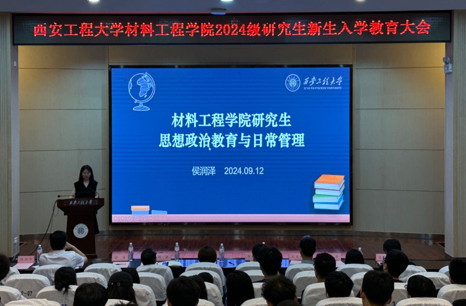 2024年9月13日下午,材料工程学院在金花校区图书馆一楼西纺报告厅顺利召开2024级研究生入学教育暨师生互选会。学院党委书记赵雪曼、副院长刘毅、院长助理、研究生秘书、研究生辅导员、研究生导师及2024级全体研究生参加了本次大会。会议由副院长苏晓磊主持。