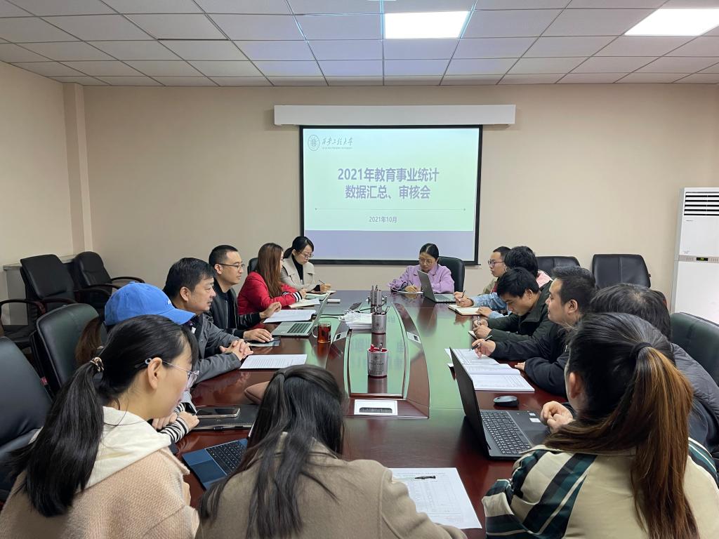 为贯彻落实《陕西省教育厅办公室关于做好2021年全省教育事业统计工作的通知》(陕教信办〔2021〕11号)要求,结合学校《关于做好2021年教育事业统计工作的通知》安排,为切实强化数据质量,提升数据汇总、审核效率,实时向学校各数据归口管理部门反馈审核意见,按时、高质量完成2021年教育事业统计工作。我校于2021年10月19日、20日集中两天在临潼校区行政楼320会议室召开了2021年教育事业统计数据汇总、审核会。发展规划处、高等教育与质量评估研究中心相关人员及各数据归口管理部门统计人员参加了会议。会议由发展规划处处长、校教育统计工作副组长王劲伟主持。