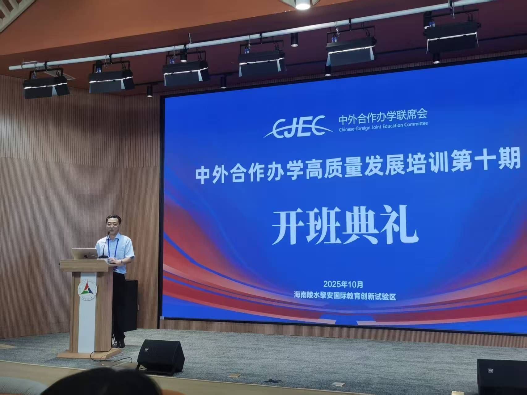 2025年10月16日至19日,中外合作办学高质量发展第十期培训在海南陵水黎安国际教育创新试验区顺利举行。我校国际交流处处长秦伟、服装与艺术设计学院党委书记苏博、副院长王峰及中英合作办学项目组教师代表一行参加培训,围绕“打造高水平中外合作办学,建设具有全球影响力的重要教育中心”主题,与全国多所高校代表开展深入交流。