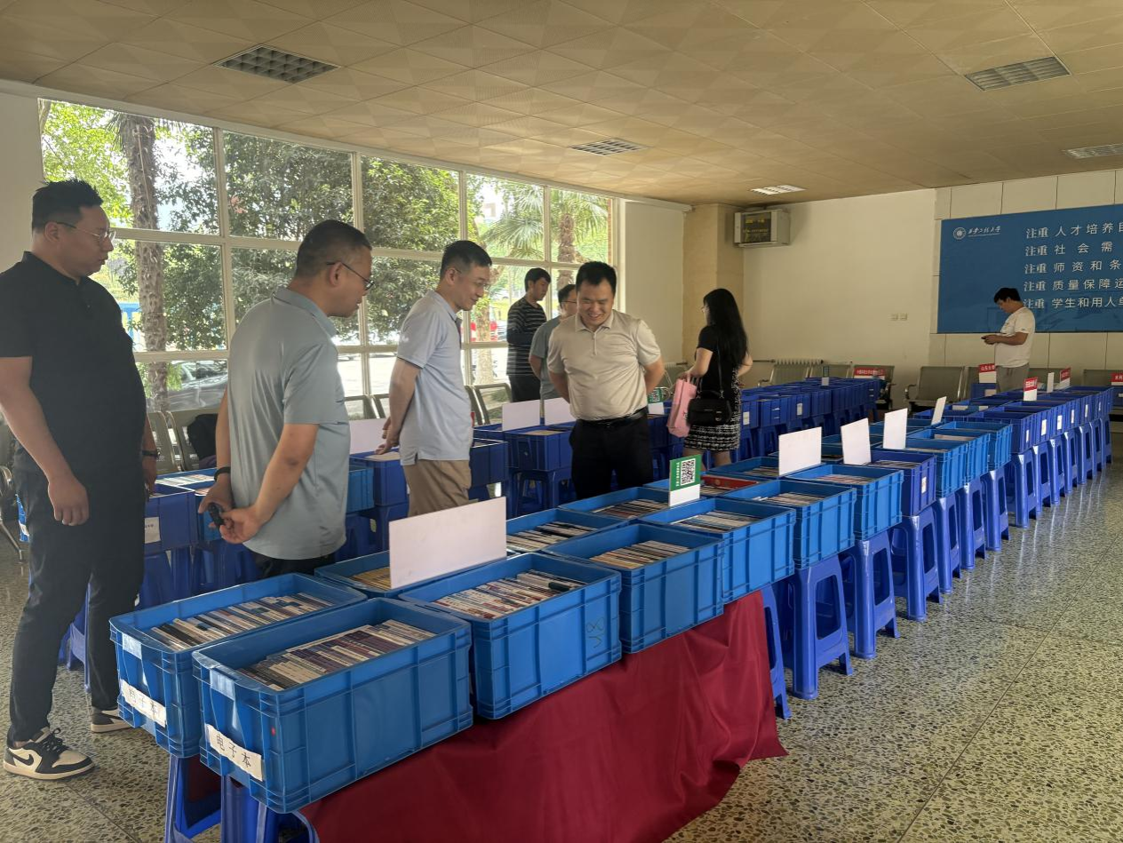 为进一步提升我校教材选用质量,助力优质教材走进课堂,5月21日,教务处联合西安交通大学出版社高校图书代办站,在临潼校区A座教学楼大厅共同举办“2025全国高校出版社教材巡展暨陕西第十八届高校教材巡展”活动。来自高等教育出版社、中国人民大学出版社、清华大学出版社、北京大学出版社、南京大学出版社等42家出版单位8000余册教材参加巡展,涵盖了理学、工学、文学、法学、经济学、管理学等多个学科领域,为我校教师提供了丰富的教材选择与交流平台。