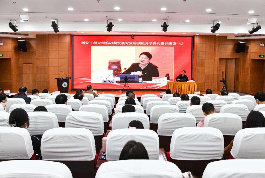 在全党上下学习贯彻党的二十大精神之际,我校第63期发展对象培训班开学典礼暨开班第一讲于2022年11月14日下午在临潼校区图书馆一楼报告厅隆重举行。校党委书记、党校校长马万清出席开学典礼并做开班第一讲,校党委理论学习中心组成员、党群部门负责人、院(部)级党组织书记、副书记、组织员、党支部书记和党员发展对象共900余人分别以线上线下方式参加了开学典礼和开班第一讲。典礼由机电工程学院党委书记阚佩主持。按照近期疫情防控要求,本次开学典礼在党政办、宣传部、网信处和教务处的协同配合下,在临潼和金花两校区智慧教室和党团活动室同步进行网络直播。