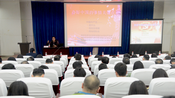 张忍成教授在报告中从十八届六中全会的基本情况、深刻领会全面从严治党的新要求、扎实推进全面从严治党的新部署三个方面,全面阐述了十八届六中全会精神的重大意义和重点任务。他详细分析了十八届六中全会以及《中国共产党党内监督条例》、《关于新形势下党内政治生活的若干准则》的内容和重要意义,阐述了全面从严治党的紧迫性和必要性。张忍成教授引用习近平总书记的讲话强调:全面从严治党,最根本的就是要使全党各级组织和全体党员、干部都按照党内政治生活准则和党的各项规定办事。他在报告中强调,全面从严治党,就要落实全面从严治党责任、坚持思想建党和制度治党紧密结合、严肃党内政治生活、坚持从严管理干部、持续深入改进作风、严明党的纪律、发挥人民监督作用、深入把握全面从严治党规律。扎实推进全面从严治党,就要筑牢使命工程,巩固长治久安的政治制度;筑牢根基工程,践行全面从严治党为人民;筑牢中枢工程,提升党的执政能力和水平;筑牢永续工程,永葆党的政治本色。要以教育活动为抓手,扎实推进思想建党;以作风建设为突破口,勤奋敬业,求真务实;以制度建设为重点,切实增强规矩意识;以廉政建设为切入点,展示全面从严治党的决心与信心;加强监督,营造不想腐、不能腐、不敢腐的良好氛围。