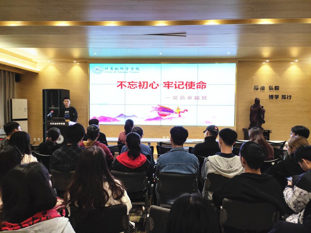 为发挥大学生党员先锋模范作用,创新大学生党员培养模式,提升大学生党员核心竞争力,2019年6月在学校党建工作室的支持下,计算机科学学院成立大学生党员卓越班。为深入贯彻习近平总书记在“不忘初心、牢记使命”主题教育工作会议上的讲话精神,引导大学生党员始终牢记党员的使命和担当,保持党员先进性,力求以实际行动为学校、学院的发展做出更大的贡献,计算机科学学院党员卓越班开展“不忘初心、牢记使命”主题教育系列活动。