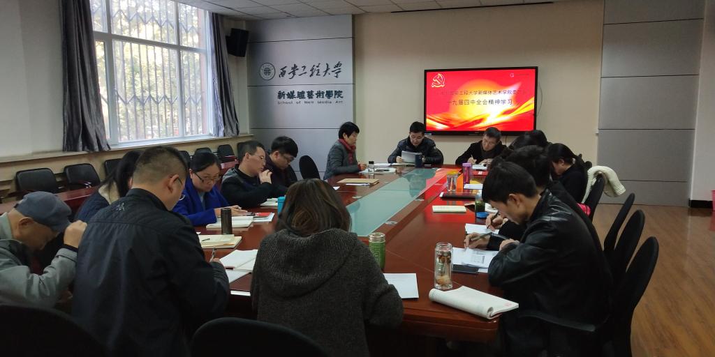 11月13日下午,新媒体艺术学院召开了党委中心组学习扩大会议,集体学习中国共产党第十九届中央委员会第四次全体会议精神。会议由新媒体艺术学院党委书记左志峰主持,院长马冬及其他党委委员、各支部书记、各系部办主要负责人参加了会议。