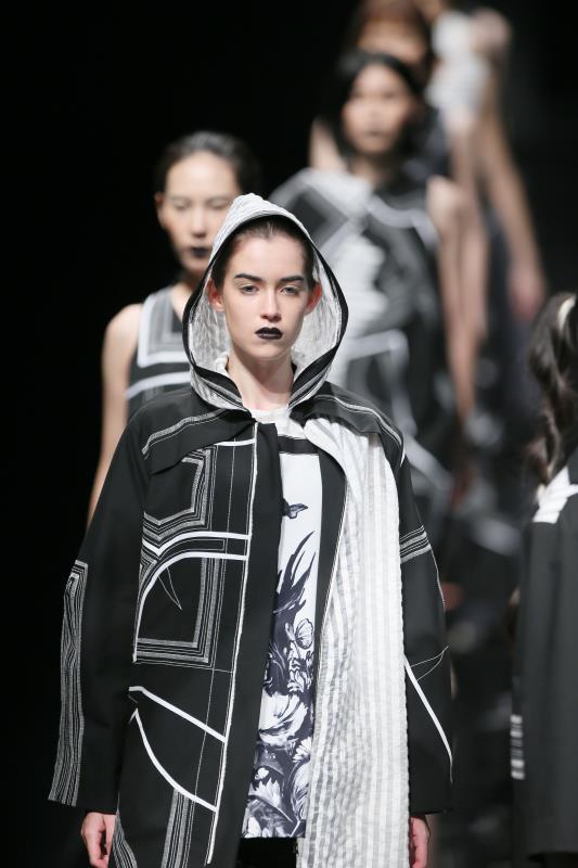 “在行进中永无尽头,无解的未来……直线、曲线、黑色、白色,几何构图的有量,诠释设计的无量与未知……皆如一切的一切,该或不该的发生,永无答案,有可能。”这是2014年中国时尚同盟走进宁波活动中,郑彤对秀的主题《无量》的诠释。服装设计无量且未知,人生亦该如此。