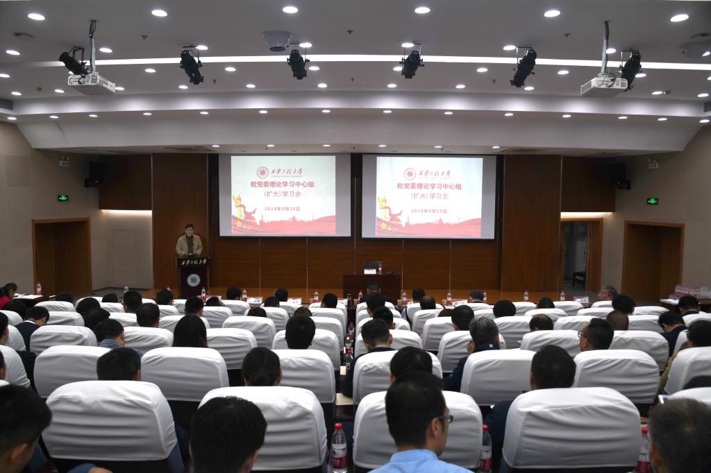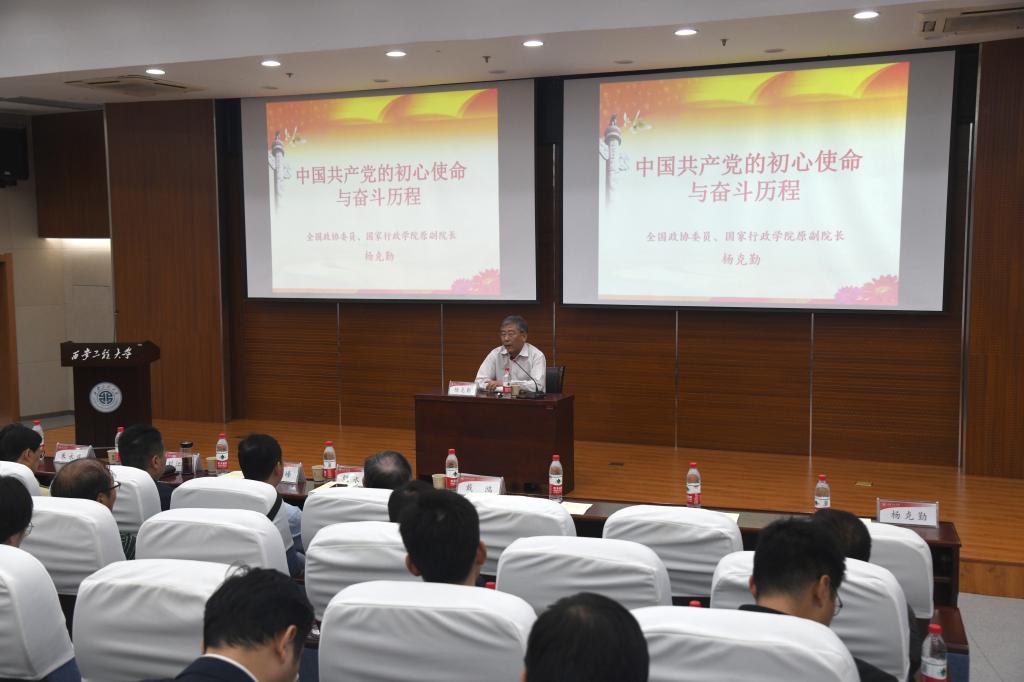无论走得多远、发展到什么程度,都不能忘记为什么出发,都要不忘初心、牢记使命。9月20日,我校在临潼校区图书馆二楼报告厅举行党委理论学习中心组(扩大)学习会,聆听全国政协委员、国家行政学院原副院长杨克勤主题为《中国共产党的初心使命与奋斗历程》的精彩报告,校党委书记刘江南主持会议并强调,要积极践行共产党员的初心和使命,把主题教育的学习成果转化为做好本职工作、推动事业发展的生动实践,实干担当,以优异成绩迎接新中国成立70周年。