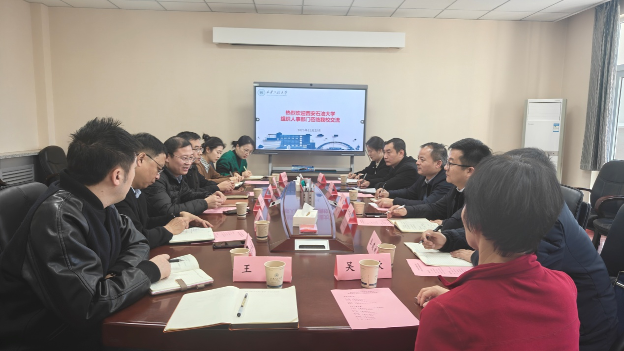 11月25日,西安石油大学人事处处长蔡强、副处长张云姿、组织部副部长刘炜航一行五人来我校...