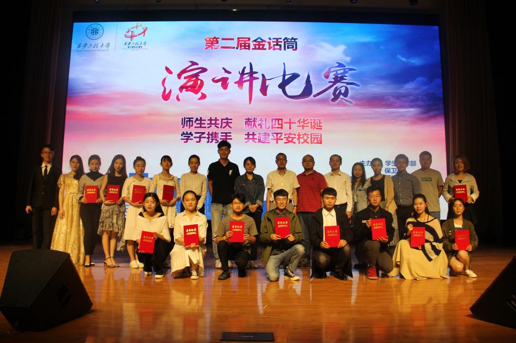 “金话筒”平安校园演讲比赛以“构建和谐平安校园”为主题,由计算机科学学院承办,在2018年6月8日晚7点至9点临潼校区大学生活动中心进行决赛。参加本次活动的嘉宾有学生工作部处副部长杨建军、计算机科学学院学工班主任赖斌、学生工工作处部郝树豪、计算机科学学院团总支书记朱瑾、计算机科学学院2017级辅导员张鑫、人文社会科学学院刘婷婷、星空游戏官方宣传张妍、研究生部黄冠和计算机科学学院程帅。