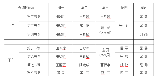 根据我校学生心理咨询工作的需要,现将有关个体咨询时间安排如下,请各学院及时通知学生,在规定时间内预约咨询。