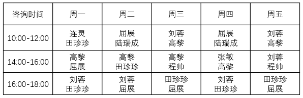 根据我校学生心理咨询工作的需要,现将有关线下个体咨询时间安排如下,请各学院及时通知学生,在规定时间内预约咨询。