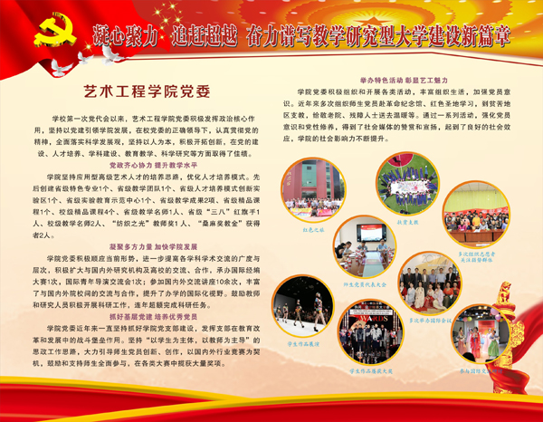 学校第一次党代会以来,艺术工程学院党委积极发挥政治核心作用,坚持以党建引领学院发展,在校党委的正确领导下,认真贯彻党的精神,全面落实科学发展观,坚持以人为本,积极开拓创新,在党的建设、人才培养、学科建设、教育教学、科学研究等方面取得了佳绩。