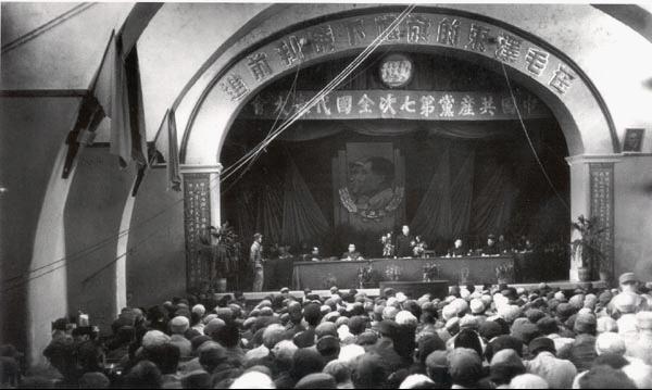 在抗日战争即将取得胜利的前夜,1945年4月23日至6月11日,中国共产党第七次全国代表大会在延安召开。出席七大的代表共755名,其中正式代表547名,候补代表208名,代表全党121万党员,分为中直(包括军直系统)、西北、晋绥、晋察冀、晋冀鲁豫、山东、华中和大后方8个代表团。在七大代表中,年龄最大的近70岁,最小的才20岁左右。