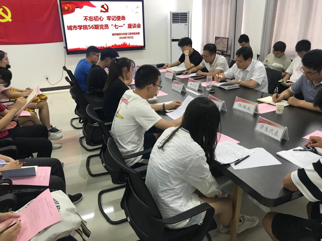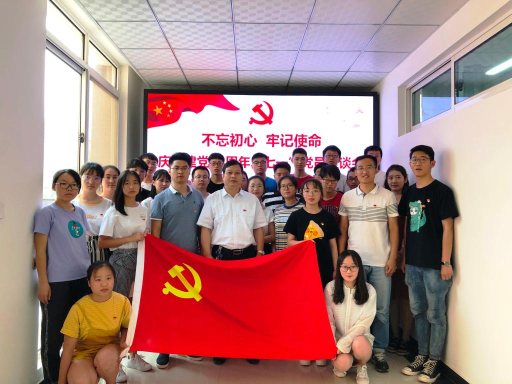 2019年7月1日下午,城市规划与市政工程学院在临潼校区8#301室召开“不忘初心,牢记使命”庆祝建党98周年“七一”党员座谈会。参加会议的有:学院党委书记杨友谊、辅导员陆瑞成、王春元及研究生、本科生预备党员和正式党员代表。