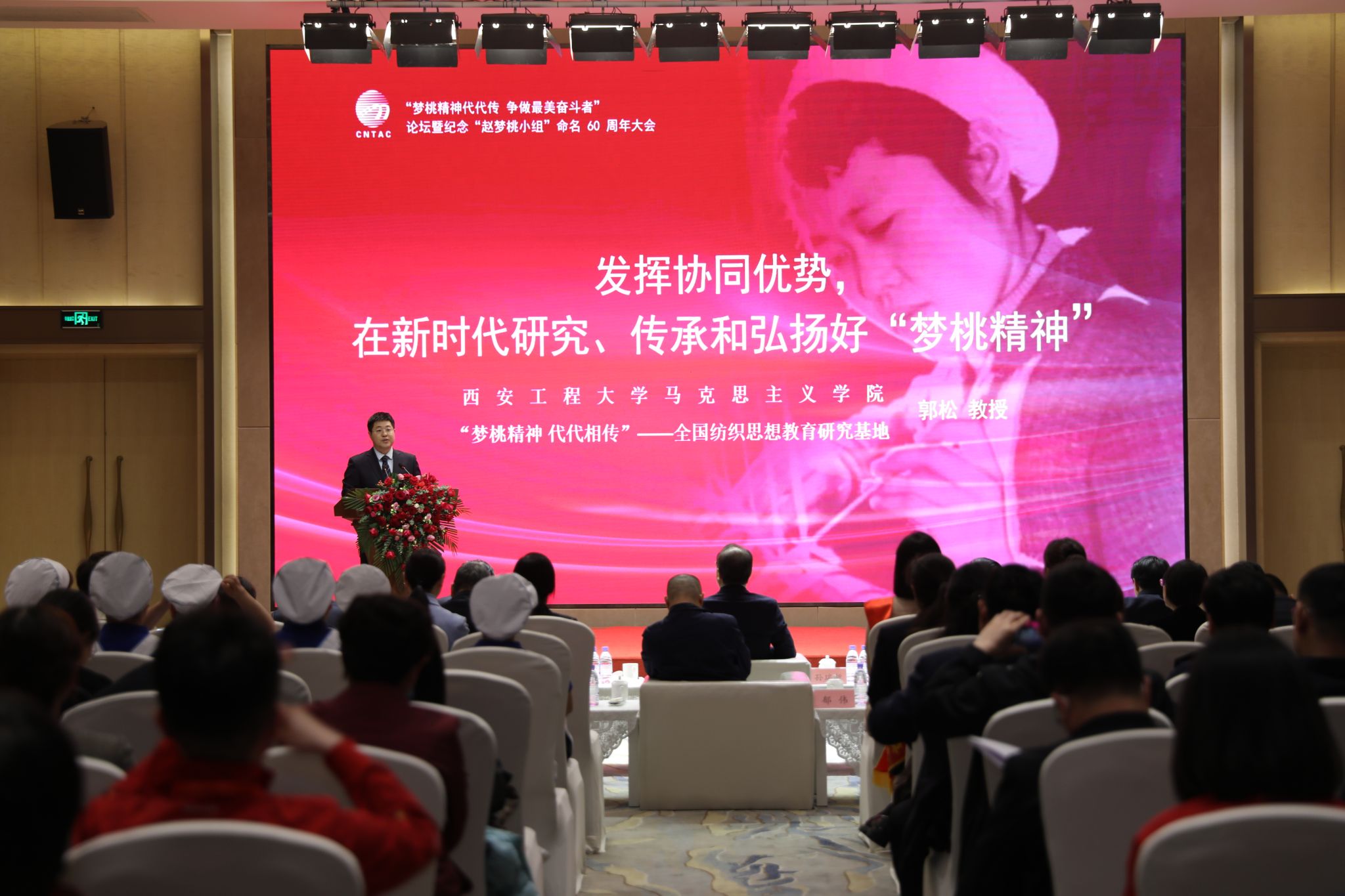 2020年,“梦桃精神 代代相传”全国纺织思想政治教育研究基地成立以来,充分发挥马克思主义理论学科优势,与纺织类专业大学生和行业职工思想政治工作深度融合,以“全国纺织战线的一面红旗”赵梦桃同志为榜样,传承、弘扬“梦桃精神”,积极开展“梦桃精神”的研究教育。2023年,研究基地荣获“全国纺织行业党建工作先进单位”,郭松教授荣获“全国纺织行业优秀思想政治工作者”“全省思想政治工作先进个人”。