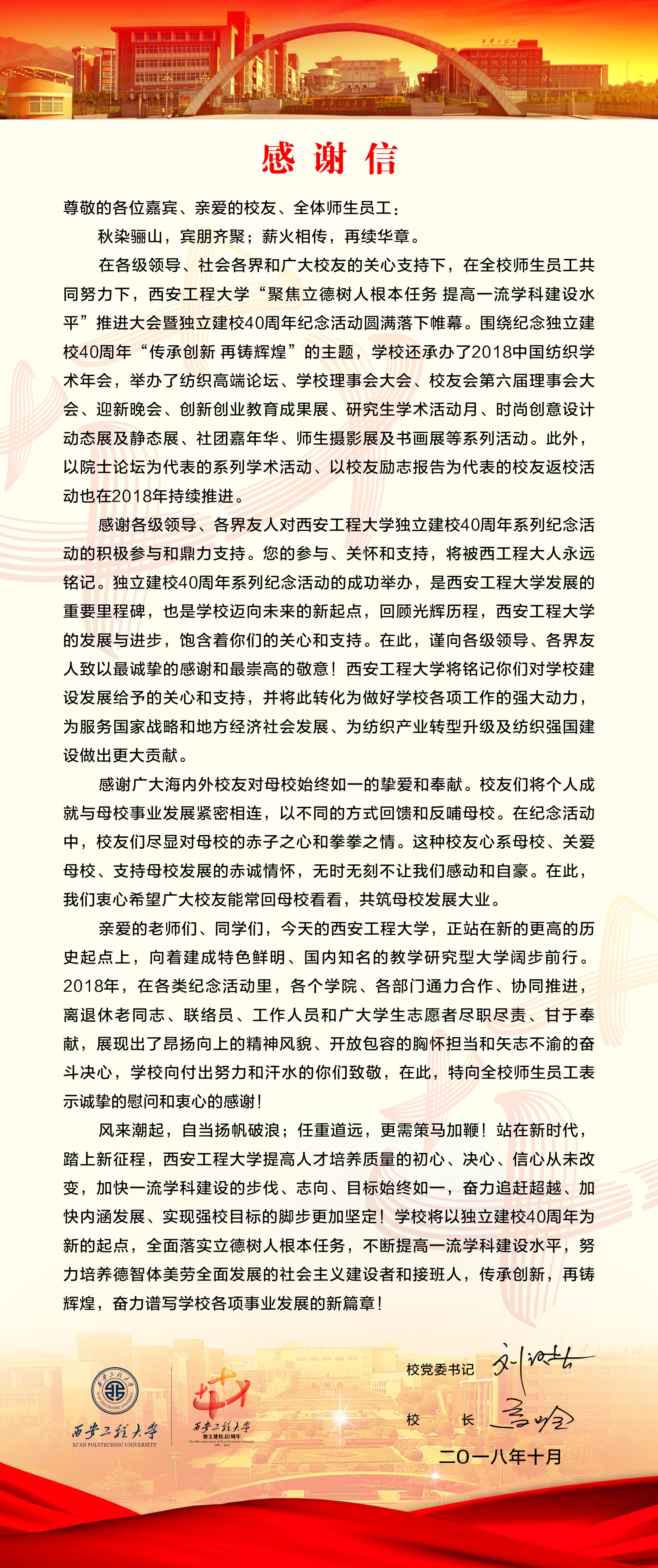 校庆感怀·校训厚德载物砥砺行,弘毅不渝馨希声。博学达识举纛旌,笃行深中...10/24校纪委书记井浩为校庆赋诗四首 -