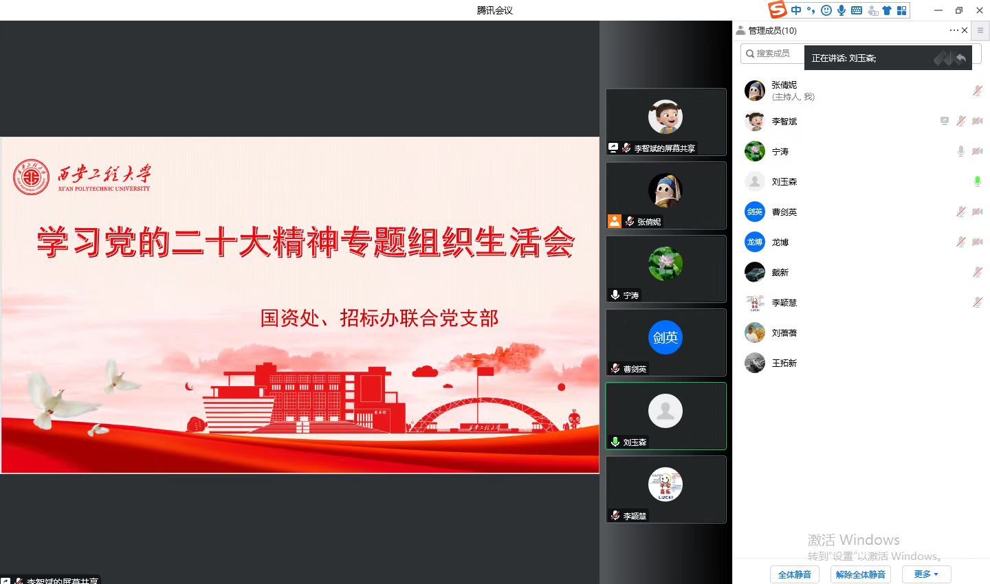 12月8日上午,国资处、招标办联合党支部召开学习党的二十大精神专题组织生活会。会议由党支部书记宁涛同志主持,支部全体党员参加了此次专题组织生活会。